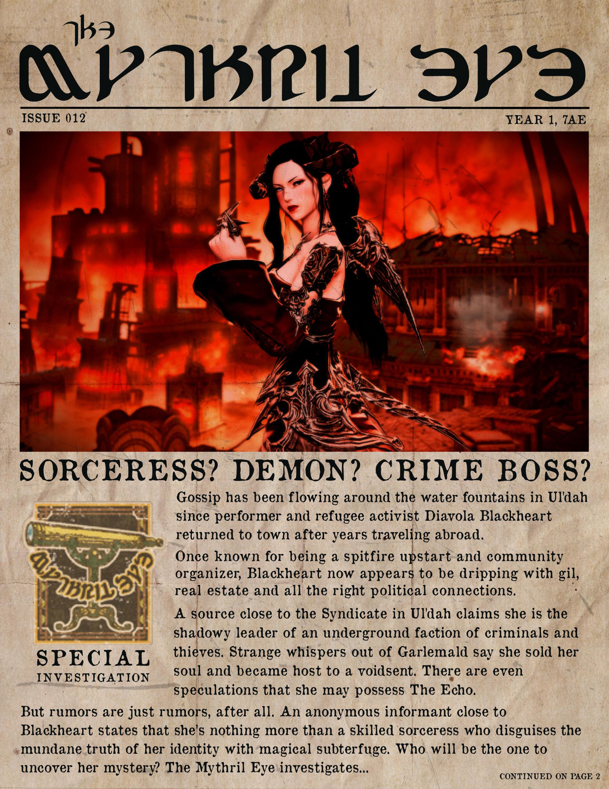 There are many rumors surrounding Diavola Blackheart. Is she a voidsent? A criminal mastermind? Or is she just a sorceress obsessed with self-protection at any cost? Maybe you're an investigator sent to find out the real story? Or perhaps a demon hunter looking for your next kill?