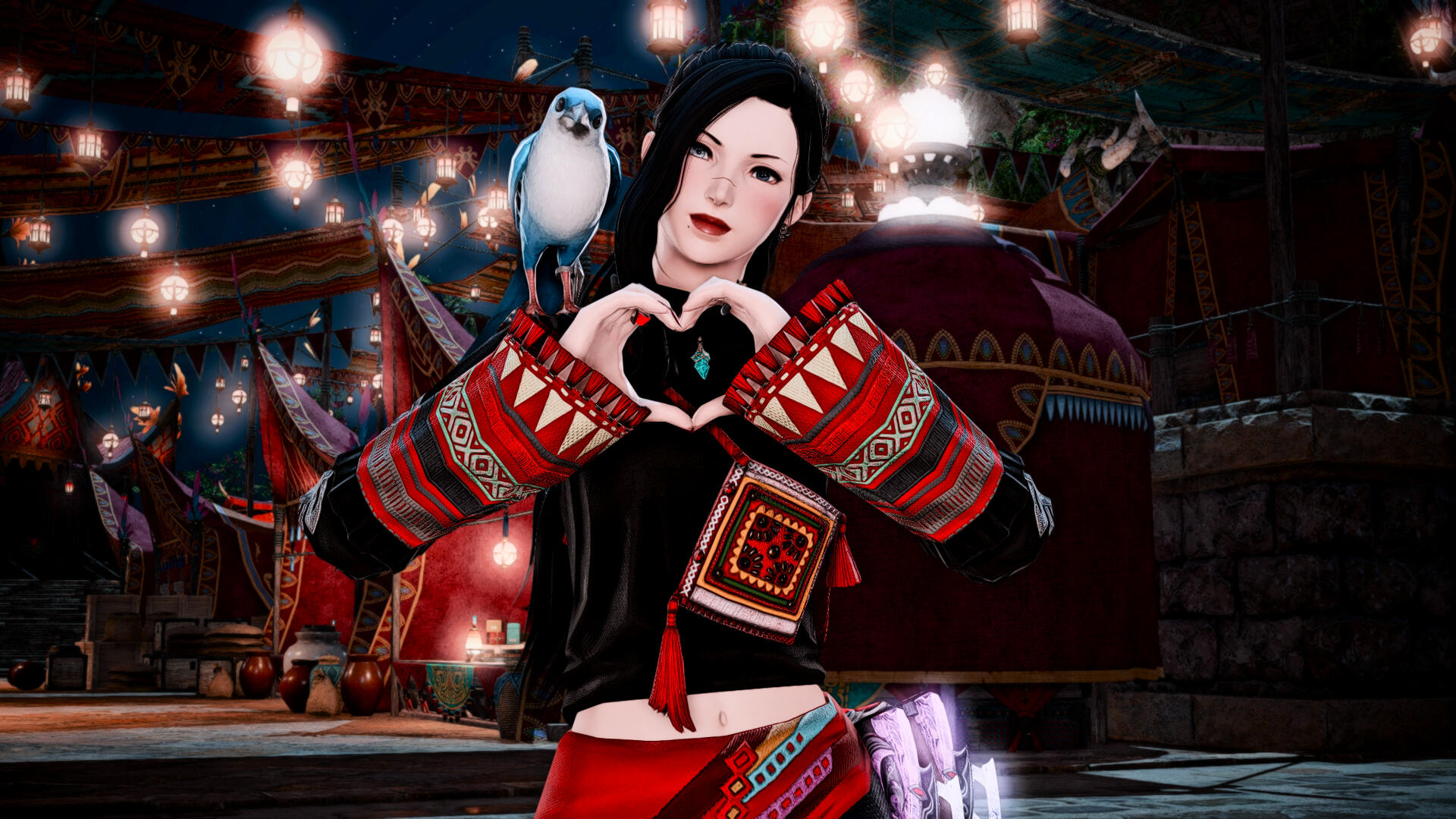 As she grew into womanhood, Diavola discovered that pilfering goods from merchants and scrounging for day-old bread wasn't the most efficient way of gathering coin for an attractive young lady. She began working as a street performer in Ul'dah, using her songbird's voice and flair for dancing to entertain citizens and visitors alike, who would gather in droves and cheer her performances late into the night.Eventually, the confines of the desert city became too much for a dreamer like Diavola. She took her show abroad, performing in taverns in small towns and cities across Eorzea. She also took mercenary jobs wherever she traveled, saving the coin she earned while imagining a better future for herself and for every refugee still suffering back home in Ul'dah.
